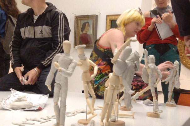 On Friday a group of activists calling themselves Save The Sketch staged a protest against the sketch ban by exploiting a loophole: you might not be able to draw the works of art, but there’s nothing stopping you sculpting them. The twelve-strong collective entered the exhibition with packs of clay and proceeded to sculpt representations of the artwork using wooden manikins. Little Atoms was there to watch the unfolding action.